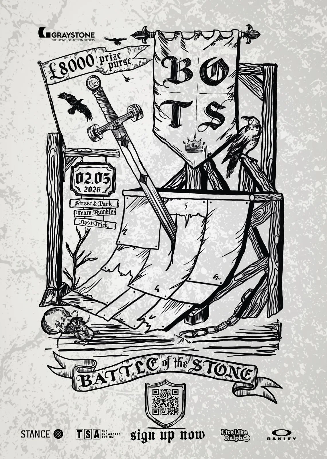 Graystone Action Sports is proud to present the return of Battle of the Stone – our biggest skateboarding event of the year. Riders from across the scene will battle it out for glory, prizes and the coveted titles of King & Queen of the Stone.